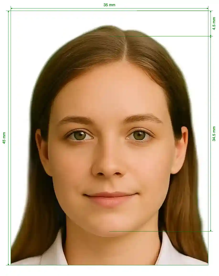Take a photo with a smartphone or camera against any background, upload it here for compliance checking that instantly verifies it meets official government requirements for Czechia In Karta 35x45 mm photo. Get print-ready results in seconds – 100% online.