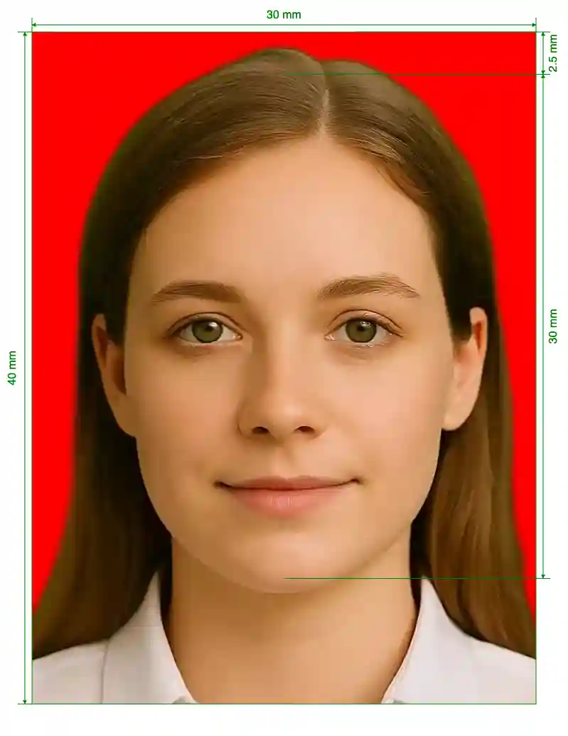 Take a photo with a smartphone or camera against any background, upload it here, and instantly check if it meets the official requirements for Indonesia visa 3x4 cm (30x40 mm) online red background. If not, we’ll help you fix it – 100% online.
