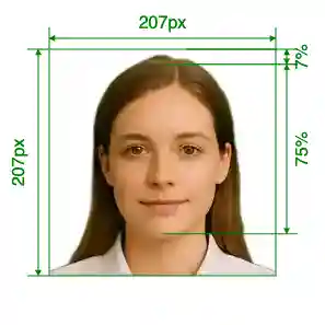 Image Definition Parameters | Head height (up to the top of the hair): 75%; Distance from top the of the photo to the top of the hair: 7% |