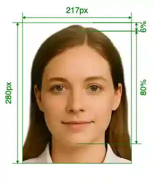 | Image Definition Parameters | Head height (up to the top of the hair): 80%; Distance from top the of the photo to the top of the hair: 6% |