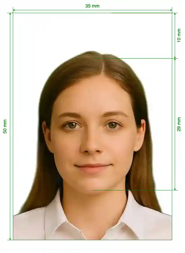 | Image Definition Parameters | Head height (up to the top of the hair): 29mm; Distance from top the of the photo to the top of the hair: 10mm |