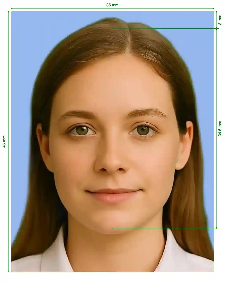 Take a photo with a smartphone or camera against any background, upload it here for compliance checking that instantly verifies it meets official government requirements for Sri Lanka ID card 35x45 mm (3.5x4.5 cm) blue background photo. Get print-ready results in seconds – 100% online.